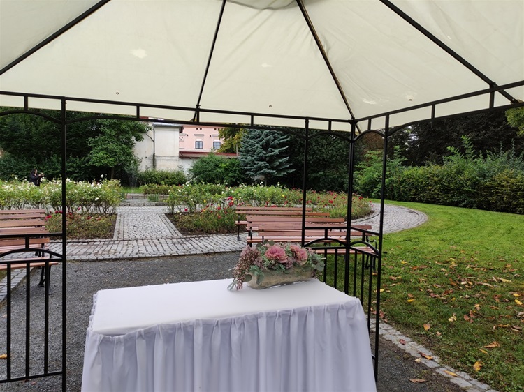 hudba), obřadní stůl s květinovou výzdobou, lavice v počtu až 8 ks.